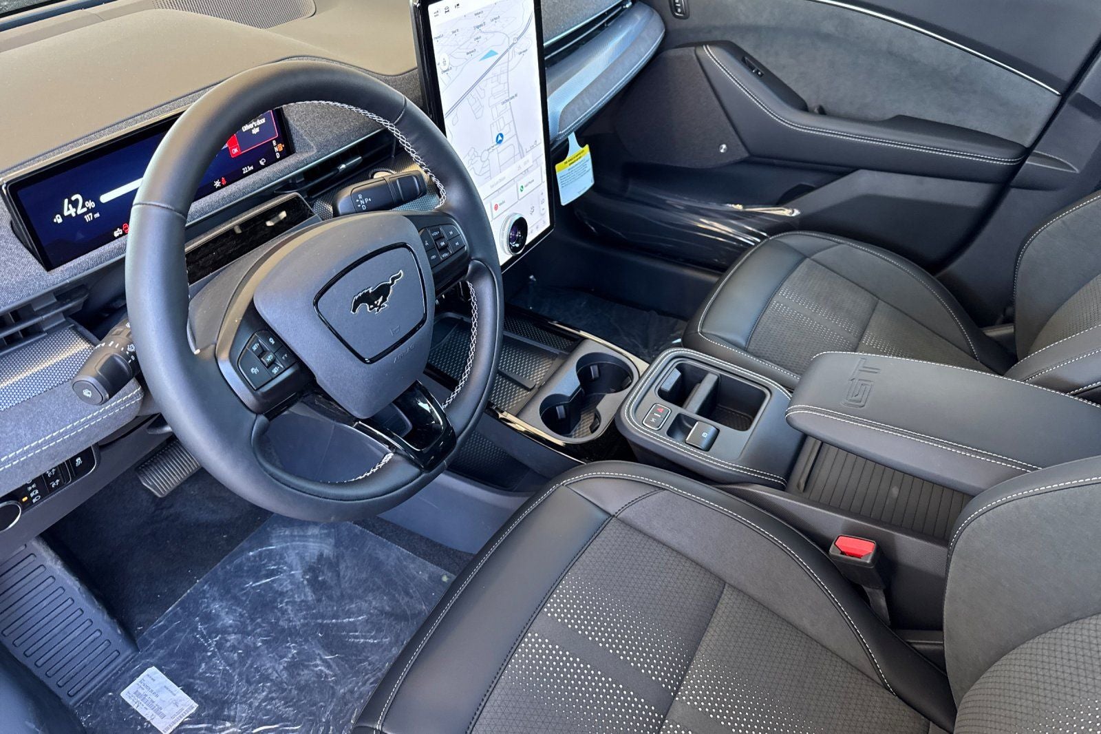 10 Speakers, 1st & 2nd Row Floor Liners w/o Carpet Mats, 4-Wheel Disc Brakes, ABS brakes, Adaptive suspension, Air Conditioning, Alloy wheels, AM/FM radio: SiriusXM with 360L, Apple CarPlay/Android Auto, Auto High-beam Headlights, Auto-dimming Rear-View mirror, Automatic temperature control, Brake assist, Bumpers: body-color, Cargo Area Cover, Cargo Floor Liner, Compass, Delay-off headlights, Driver door bin, Driver vanity mirror, Dual front impact airbags, Dual front side impact airbags, Electronic Stability Control, Emergency communication system: 911 Assist, Equipment Group 400A Standard Package, Exterior Parking Camera Rear, Four wheel independent suspension, Front anti-roll bar, Front Bucket Seats, Front Center Armrest, Front dual zone A/C, Front License Plate Bracket, Front reading lights, Fully automatic headlights, Garage door transmitter, Heated door mirrors, Heated front seats, Heated Perforated ActiveX Performance Seats, Heated steering wheel, Hood & Decklid Stripe/Door Graphics Delete, Illuminated entry, Interior Protection Package, Internet access capable: FordPass Connect, Knee airbag, Low tire pressure warning, Memory seat, Mobile Power Cord (120V/240V), Mustang Mach-E GT Performance Upgrade, Navigation system: Connected Navigation, Occupant sensing airbag, Outside temperature display, Overhead airbag, Overhead console, Panic alarm, Panoramic Fixed-Glass Roof, Passenger door bin, Passenger vanity mirror, Power door mirrors, Power driver seat, Power Liftgate, Power passenger seat, Power steering, Power windows, Radio data system, Radio: B&O Sound System by Bang & Olufsen, Rain sensing wipers, Rear anti-roll bar, Rear seat center armrest, Rear side impact airbag, Rear window defroster, Rear window wiper, Remote keyless entry, Security system, SiriusXM w/360L, Speed control, Speed-sensing steering, Speed-Sensitive Wipers, Split folding rear seat, Spoiler, Steering wheel mounted audio controls, SYNC 4A w/Enhanced Voice Recognition, Telescoping steering wheel, Tilt steering wheel, Traction control, Trip computer, Turn signal indicator mirrors, Variably intermittent wipers, Wheels: 20 Monochromatic High Gloss Black-Painted. Shadow Black 2025 Ford Mustang Mach-E GT AWD Single-Speed Automatic 90/81 City/Highway MPG We are the number one Ford and Lincoln dealer in San Luis Obispo! We pride ourselves on going the extra mile to make sure your buying experience with us is by far the best buying experience you have ever had. Price includes: $1000 - Retail Bonus Cash. Exp. 04/30/2026 $4000 - Retail Customer Cash. Exp. 04/30/2026