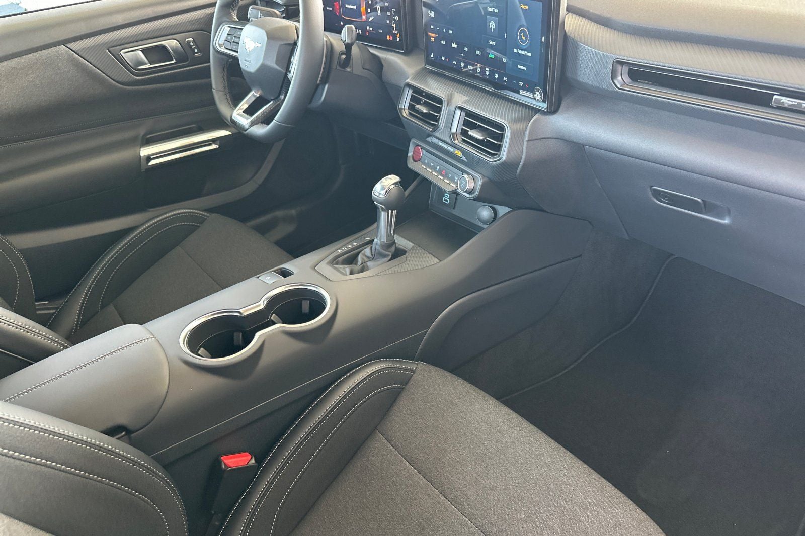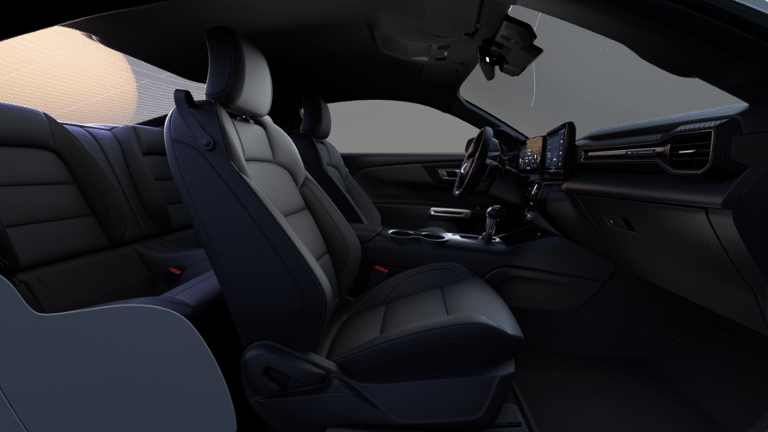 1st Row Carpeted Black Floor Mats, 4-Wheel Disc Brakes, ABS brakes, Active Valve Performance Exhaust, Air Conditioning, Alloy wheels, AM/FM Stereo, Ambient Lighting with MyColor, Auto High-beam Headlights, Automatic temperature control, Brake assist, Bumpers: body-color, Cloth/Vinyl Heated Bucket Seats, Compass, Delay-off headlights, Driver door bin, Driver vanity mirror, Dual front impact airbags, Dual front side impact airbags, Electronic Stability Control, Emergency communication system: 911 Assist, Equipment Group 301A High Package, Exterior Parking Camera Rear, Four wheel independent suspension, Front anti-roll bar, Front Bucket Seats, Front Center Armrest, Front dual zone A/C, Front reading lights, Fully automatic headlights, Illuminated entry, Knee airbag, Leather Shift Knob, Leather steering wheel, Low tire pressure warning, Occupant sensing airbag, Outside temperature display, Overhead airbag, Overhead console, Panic alarm, Passenger door bin, Passenger vanity mirror, Power door mirrors, Power steering, Power windows, Radio data system, Rain sensing wipers, Rear anti-roll bar, Rear Parking Sensors, Rear window defroster, Remote keyless entry, SiriusXM with 360L and HD Radio, Speed control, Speed-sensing steering, Speed-Sensitive Wipers, Split folding rear seat, Sport steering wheel, Steering wheel mounted audio controls, SYNC 4, Tachometer, Telescoping steering wheel, Tilt steering wheel, Traction control, Trip computer, Variably intermittent wipers, Voltmeter, Wheels: 8 x 8.5 Ebony Black Painted Aluminum. Vapor Blue Metallic 2026 Ford Mustang GT RWD 10-Speed Automatic