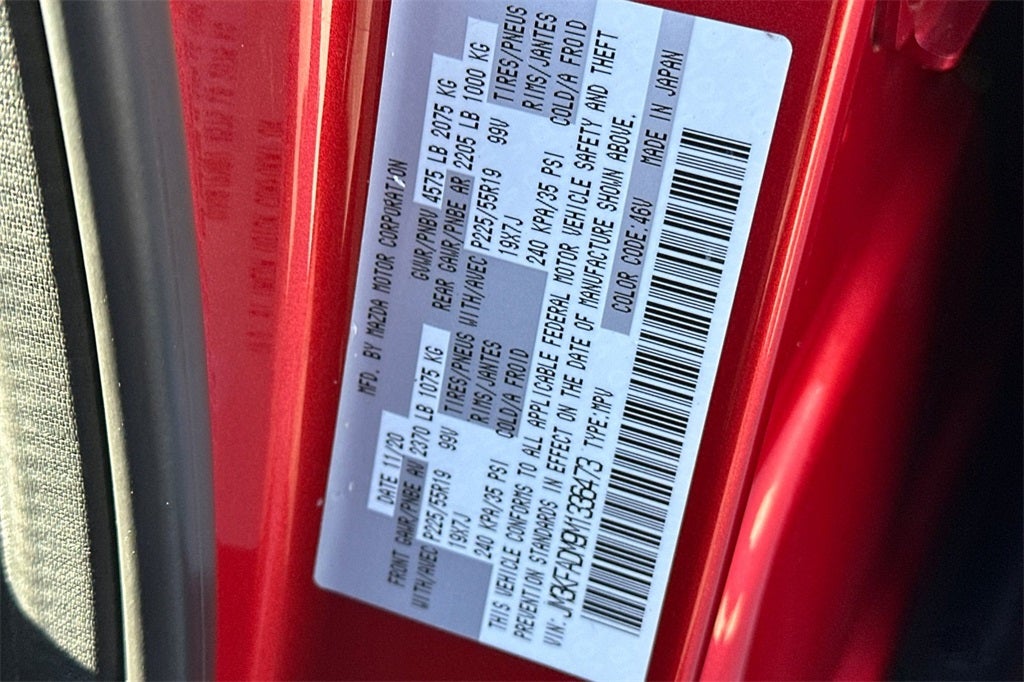 10 Speakers, 4-Wheel Disc Brakes, 4.325 Axle Ratio, ABS brakes, Air Conditioning, Alloy wheels, AM/FM radio: SiriusXM, AppLink/Apple CarPlay and Android Auto, Auto High-beam Headlights, Auto-dimming Rear-View mirror, Automatic temperature control, Bose 10-Speaker Premium Audio Sound System, Brake assist, Bumpers: body-color, Delay-off headlights, Driver door bin, Driver vanity mirror, Dual front impact airbags, Dual front side impact airbags, Electronic Stability Control, Emergency communication system: MAZDA CONNECT, Exterior Parking Camera Rear, Four wheel independent suspension, Front anti-roll bar, Front Bucket Seats, Front Center Armrest, Front dual zone A/C, Front fog lights, Front reading lights, Fully automatic headlights, Garage door transmitter: HomeLink, Heated door mirrors, Heated Front Bucket Seats, Heated front seats, Illuminated entry, Leather Seat Trim, Leather Shift Knob, Low tire pressure warning, Memory seat, Occupant sensing airbag, Outside temperature display, Overhead airbag, Overhead console, Panic alarm, Passenger door bin, Passenger vanity mirror, Power door mirrors, Power driver seat, Power Liftgate, Power moonroof, Power passenger seat, Power steering, Power windows, Radio data system, Radio: AM/FM/HD Audio System, Rain sensing wipers, Rear anti-roll bar, Rear reading lights, Rear seat center armrest, Rear window defroster, Rear window wiper, Remote keyless entry, Soul Red Crystal Metallic Paint, Speed control, Speed-sensing steering, Split folding rear seat, Spoiler, Steering wheel mounted audio controls, Tachometer, Telescoping steering wheel, Tilt steering wheel, Traction control, Trip computer, Turn signal indicator mirrors, Variably intermittent wipers, and Wheels: 19 x 7J Aluminum Alloy We strive to make your experience with Perry Ford Santa Barbara an outstanding experience - for the life of your vehicle. Call 888-815-4851 for your No-Obligation Internet Price Quote from our Internet Department.